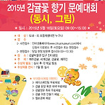 2015년 감귤꽃 향기 문예대회(동시, 그림)1. 행사명 : 제3회 감귤꽃 문예대회2. 부문 : 동시, 그림 (*필기구 및 그림도구 각자 지참/ 1인 2부문 참여 가능)3. 일시 : 2015년 5월 16일(토요일) 09:00~15:004. 행사장소 : 감귤박물관 입구 잔디광장5. 참가대상 : 감귤발물관 방문 도내외 초등학생6. 주제 : 제주감귤, 세계감귤, 감귤꽃, 제주인7. 참가비 : 없음8. 참가 준비물 : 동시부(필기구) / 그림부(그림그리기 도구)9. 참가신청서 교부 및 접수 가. 사전접수 : 인터넷홈페이지(www.citrusmuseum.com)에서 신청서 다운로드 후 팩스나 이메일 발송 FAX 760-6409 이메일(soloreum1984@korea.kr) 나. 현장접수 : 당일 현장 방문후 접..