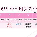 올해 2016년 주식배당기준일은 12월 27일입니다. 2016년 12월 27일 6시까지만 배당주를 보유하고 있어도 2017년 3월, 4월 배당금을 받을 수 있답니다. 1주를 가지고 있어도 받을 수 있는 배당이기에 항상 이맘때쯤 관심을 가져야 하는 것이 바로 배당주가 아닐까 싶습니다. 저의 경우 은행이자보다 좋은 배당주를 보유하려고 많이 노력을 하고 있답니다. 지금은 주가가 떨어져 있는 것이 많기에 배당주를 보유하고 있는 것도 나름 재테크가 아닐까 싶습니다. 작을 때는 5천만원을, 많을 때는 1억을 주식 총알로 사용하는 저의 경우 배당금은 은행이자보다 행복한 주식이자랍니다. 12월 주식배당기준일 당일에 사서 보유만 하고 있어서 3월에 배당금이 들어오니 말입니다. 2016년 12월 27일 배당기준일에 주주명..