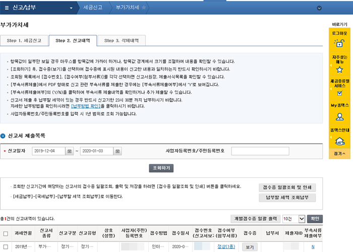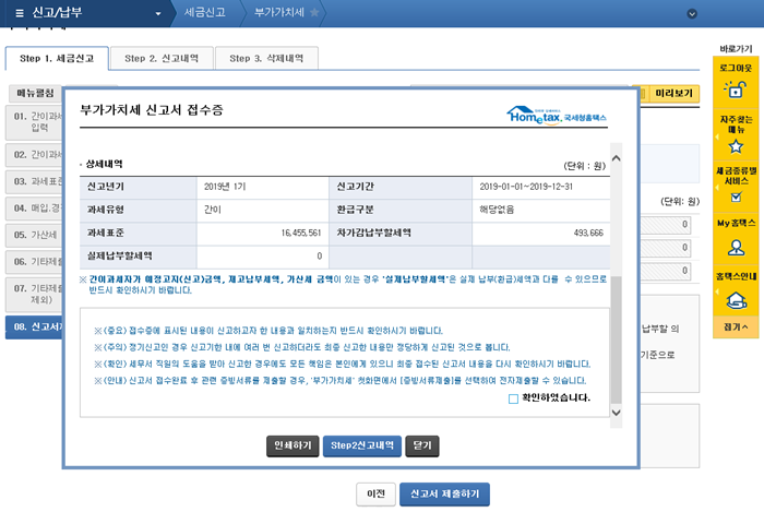 집으로 와서 보니 2019년 부가가치세를 신고해야 하네요.