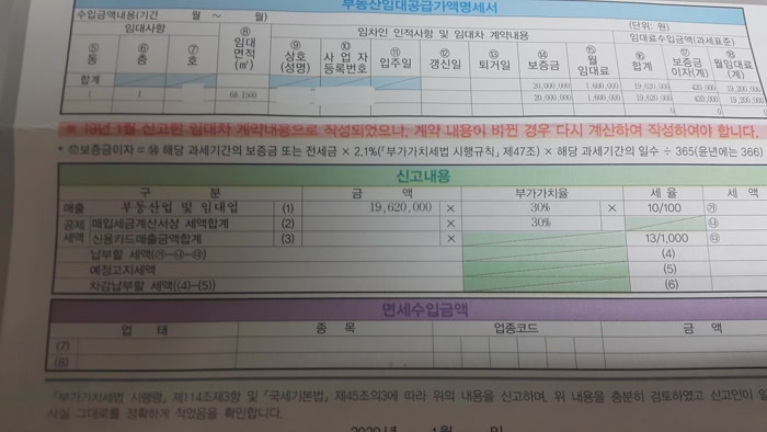 보증금 2천만 원, 월세 160만 원에서 월세를 140만 원으로 내렸고, 그다음에는 보증금 천만 원, 월세 130만 원으로 내렸네요. 월세가 변경이 되어서 부가가치세를 신고하는 것이 저번보다는 조금 복잡해요.