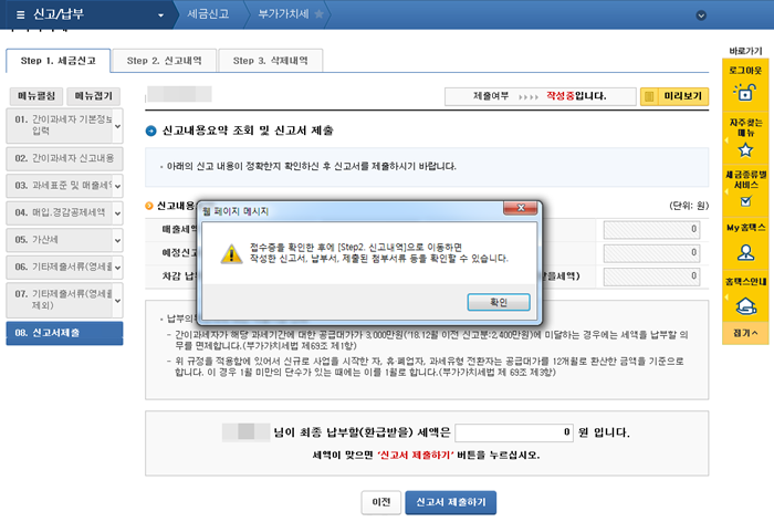 부가가치세 신고서 접수증을 확인했어요.