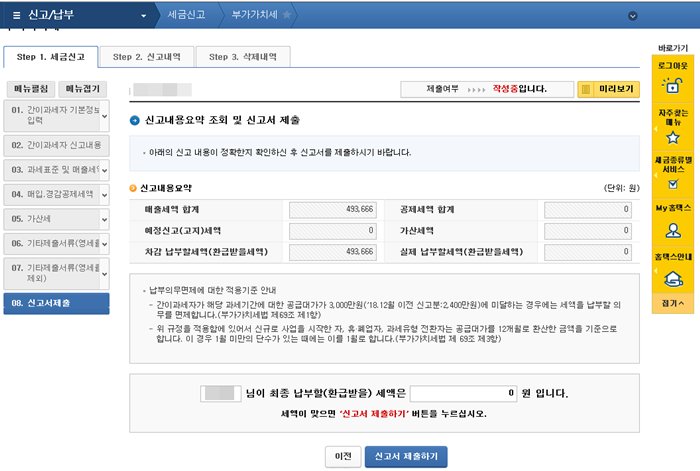 8. 신고내용요약 조회 및 신고서 제출