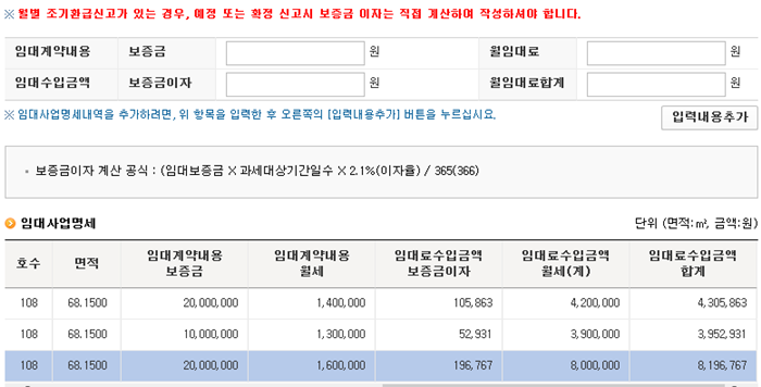 5. 임차인별 임대수입내용 입력하기