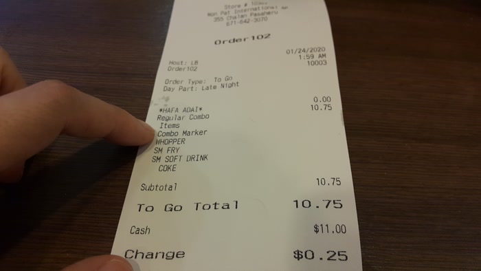 10.75달러짜리 WHOPPER세트를 시켰어요.