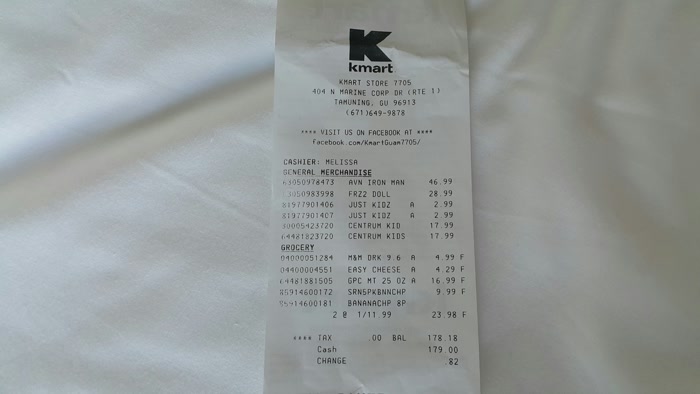 괌 K마트에서 산 금액은 178.18달러.