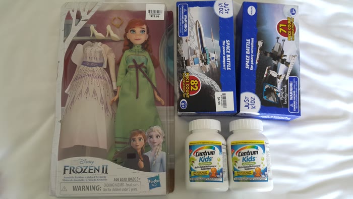 - 바나나칩, 이지치즈, m&m 민트맛, 초콜릿, 아이언맨 장난감, 스타워즈 레고, 겨울왕국 안나 인형