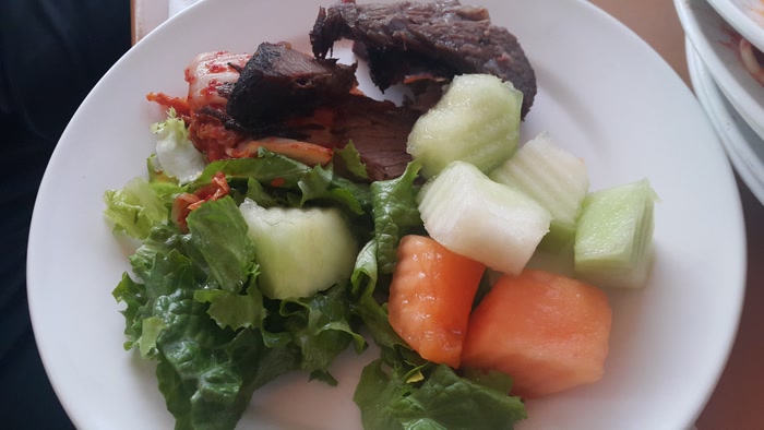 농담 삼아 남편에게 괌 pic호텔 원주민 디너쇼의 가장 맛있는 음식은 깍두기라고 이야기를 했네요. 알맞게 익어서 설렁탕이 생각날 정도이네요.