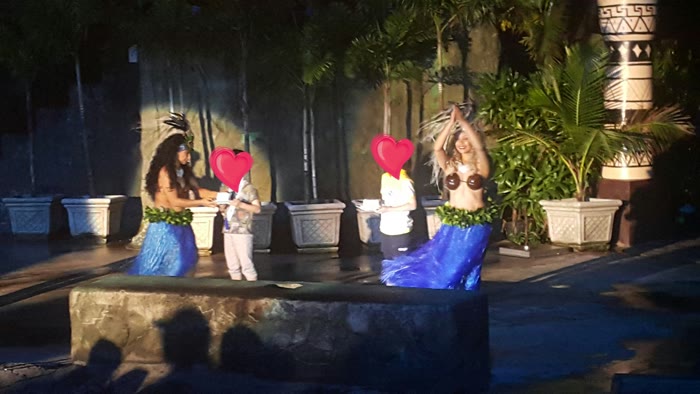 7시 15분이 되니 1월 생일 축하 어린이를 불렀어요. 딸아이의 생일이 있는 달 기념으로 괌 pic를 왔기에 원주민 디너쇼에서 소소하게 이벤트를 해 줄 수 있었어요.