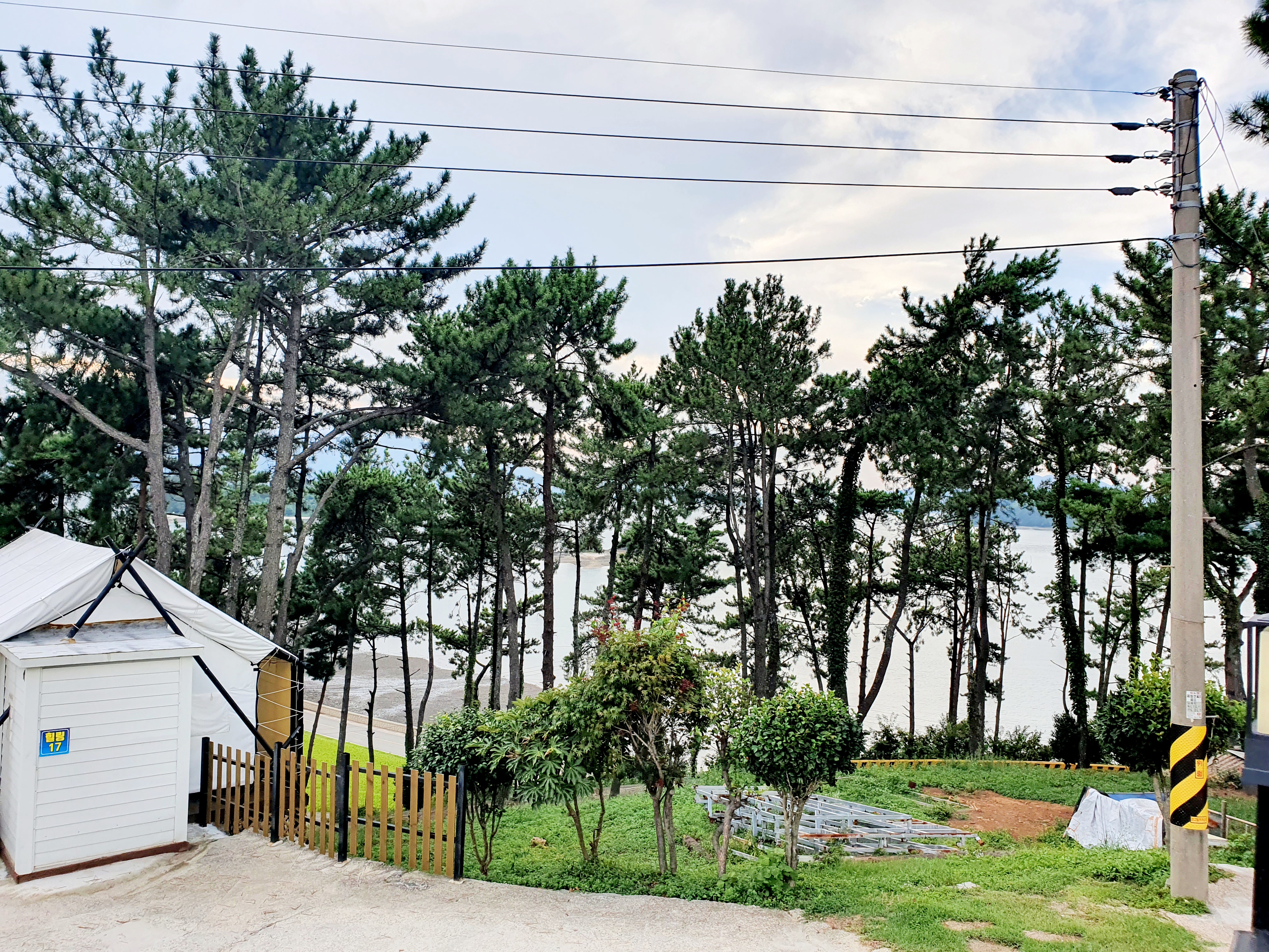 오션뷰는 조금 더 비싼데 바닷가가 아주 조금 보이네요. 오션뷰가 보이는 자리는 애견 동반이 되지 않는 방이랍니다.