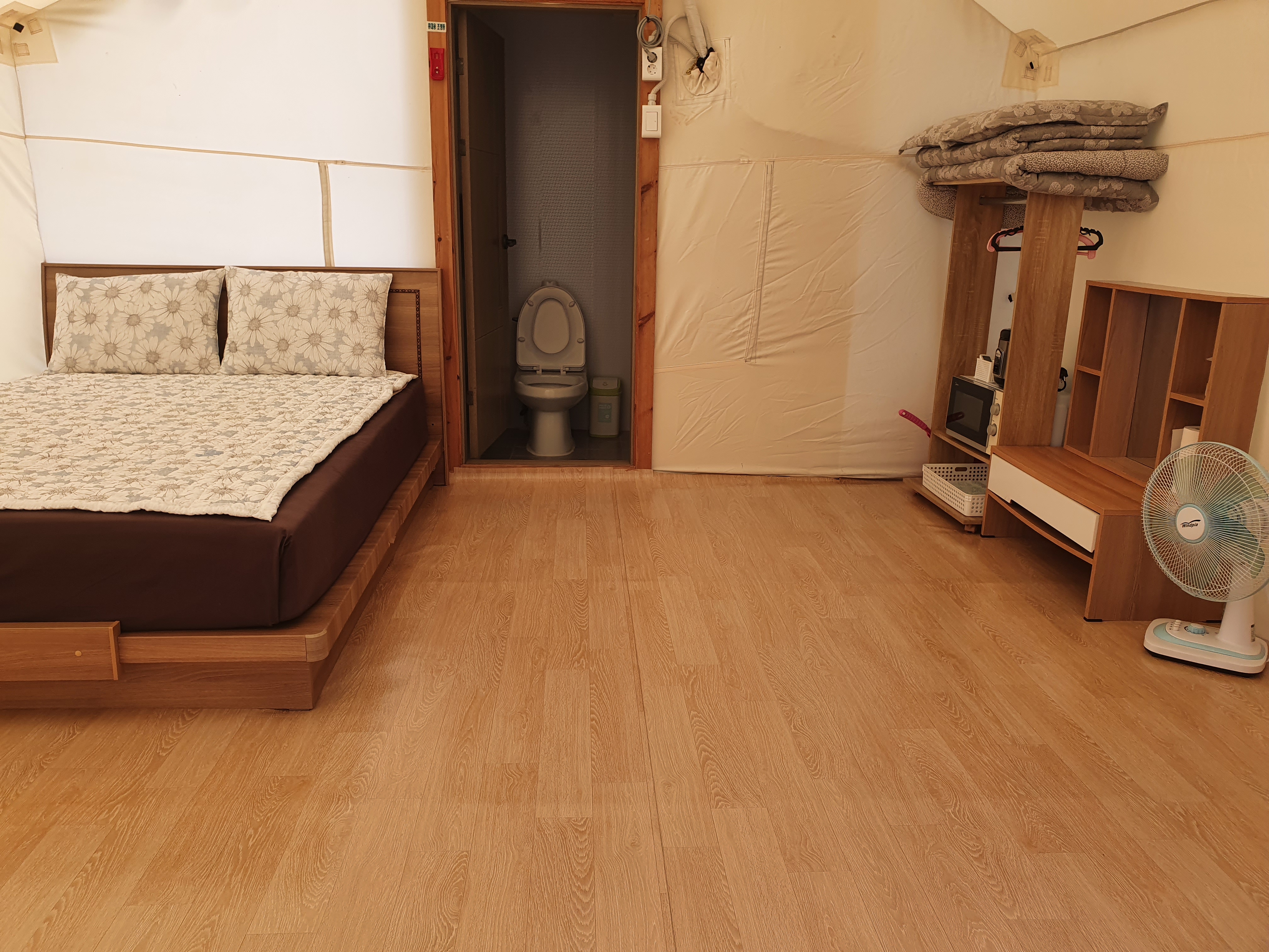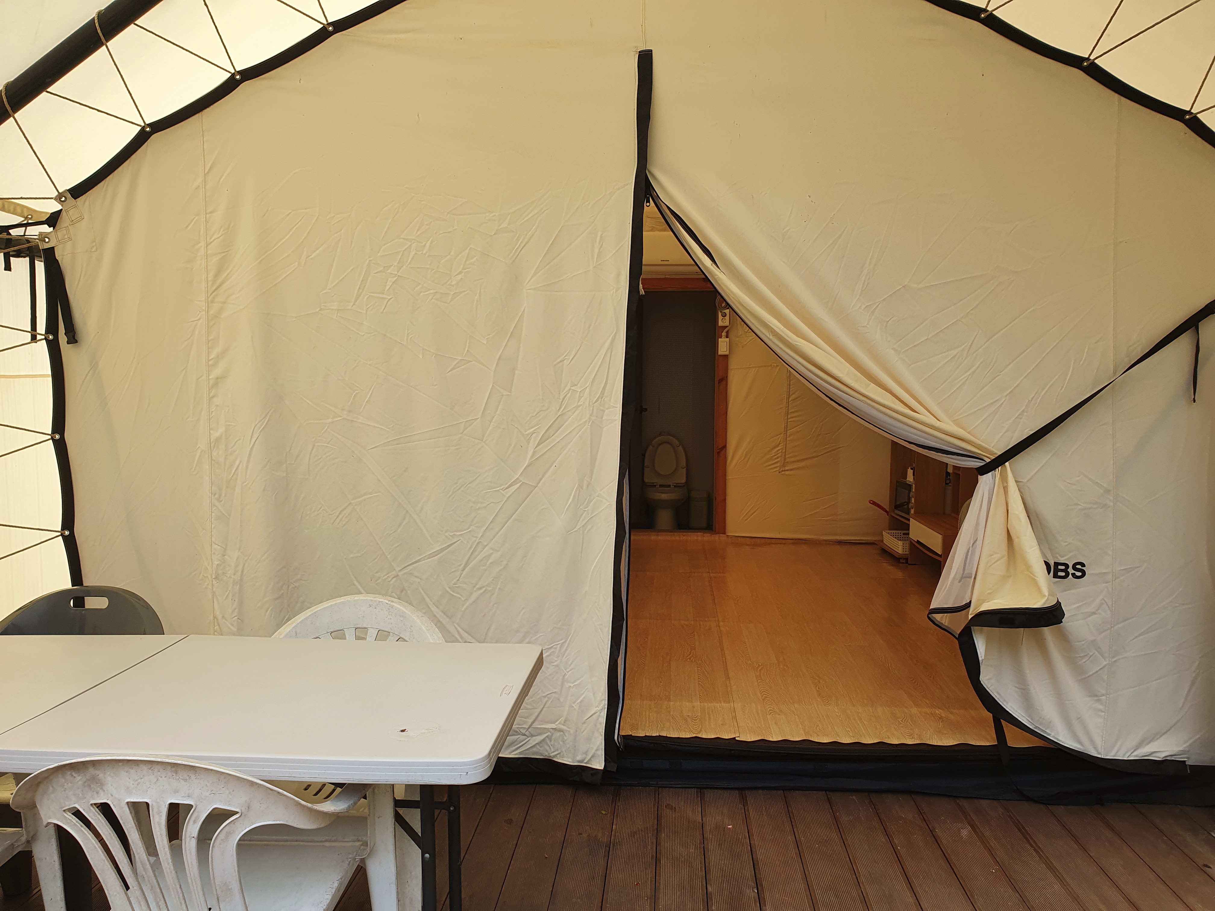 애견동반 글램핑을 시작했어요. 장소는 깨끗했어요. 12호는 가장 가장자리였어요.