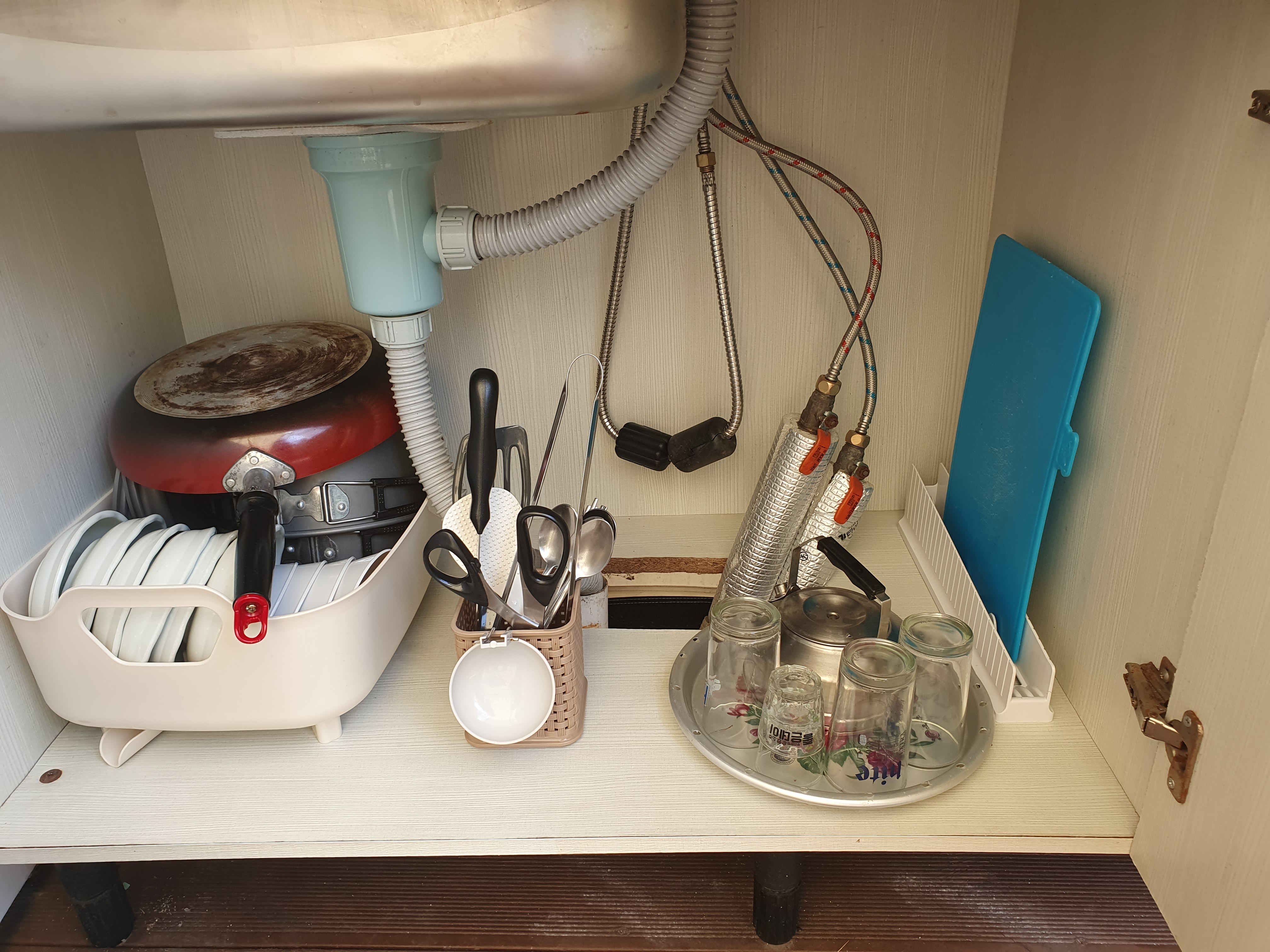 식기구 모습이네요. 설거지를 하는 것이 싫어서 그릇은 그냥 일회용을 사서 갔어요. 저희가 사용한 것은 코펠냄비이네요. 저희 앞에 사용하신 분이 그릇들을 깨끗하게 사용하셔서 나쁘지 않았어요.