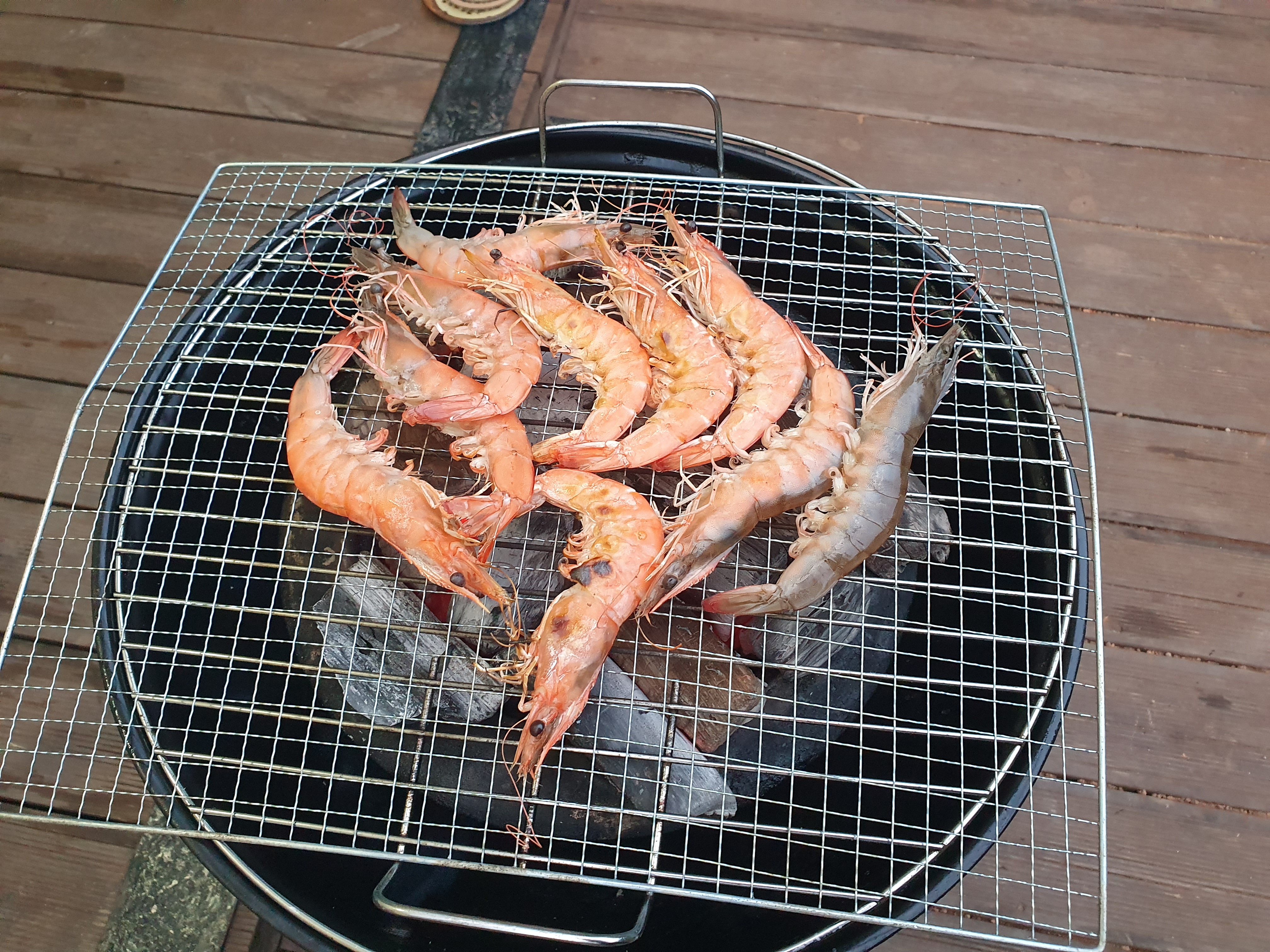 여기는 먹을 것은 모두 준비를 해 가야 해요. 그래서 저희는 편하게 주변 마트(남해식자재마트)에 가서 회, 새우, 고기 등 먹을 거리를 모두 챙겨서 갔어요. 캠핑 식재료비는 13만원 정도 들었어요.