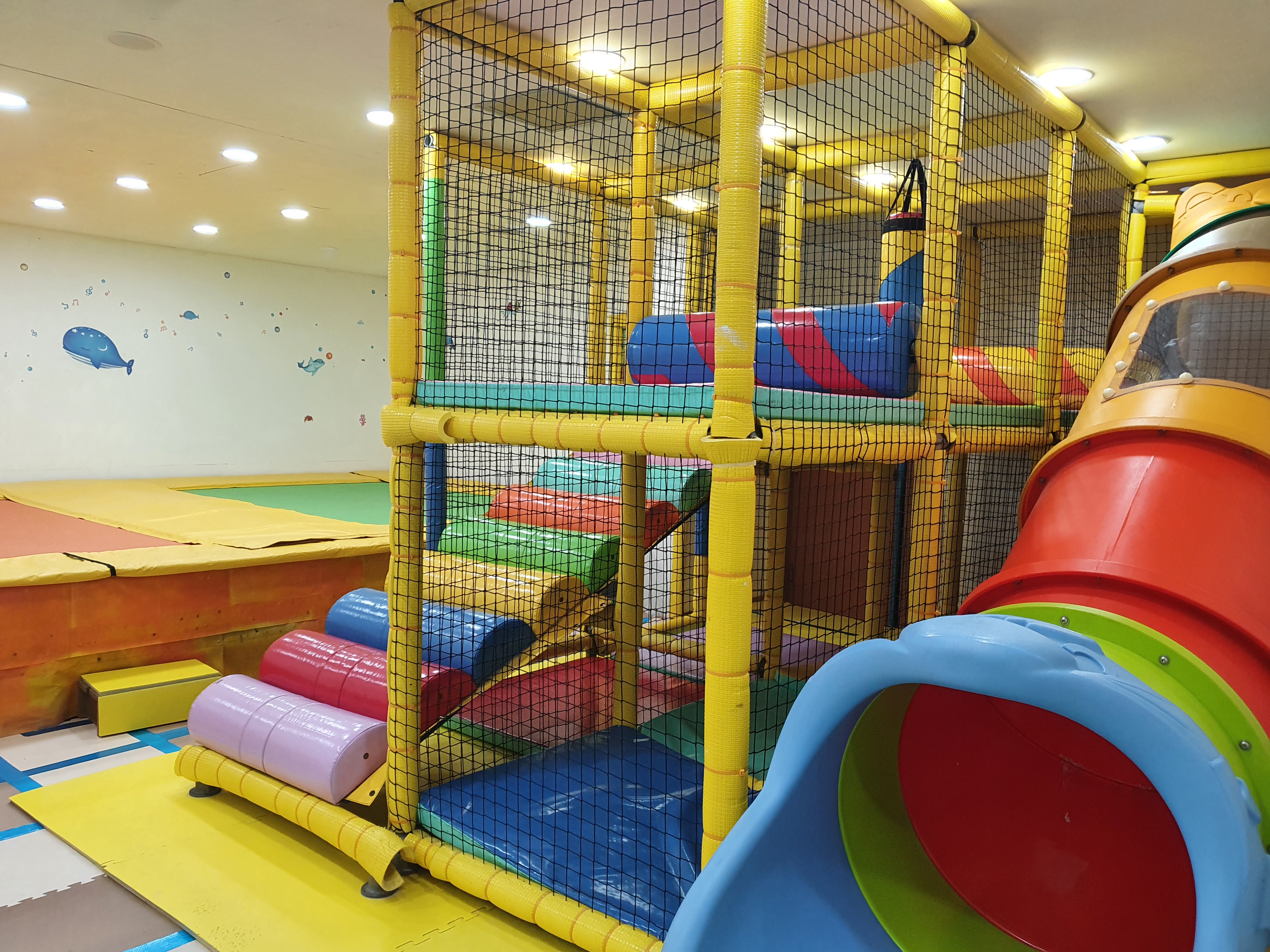 트럼블린과 미끄럼틀이 있어요. 아무도 놀지 않아서 우리 가족만 잠깐 뛰다가 갔네요.
