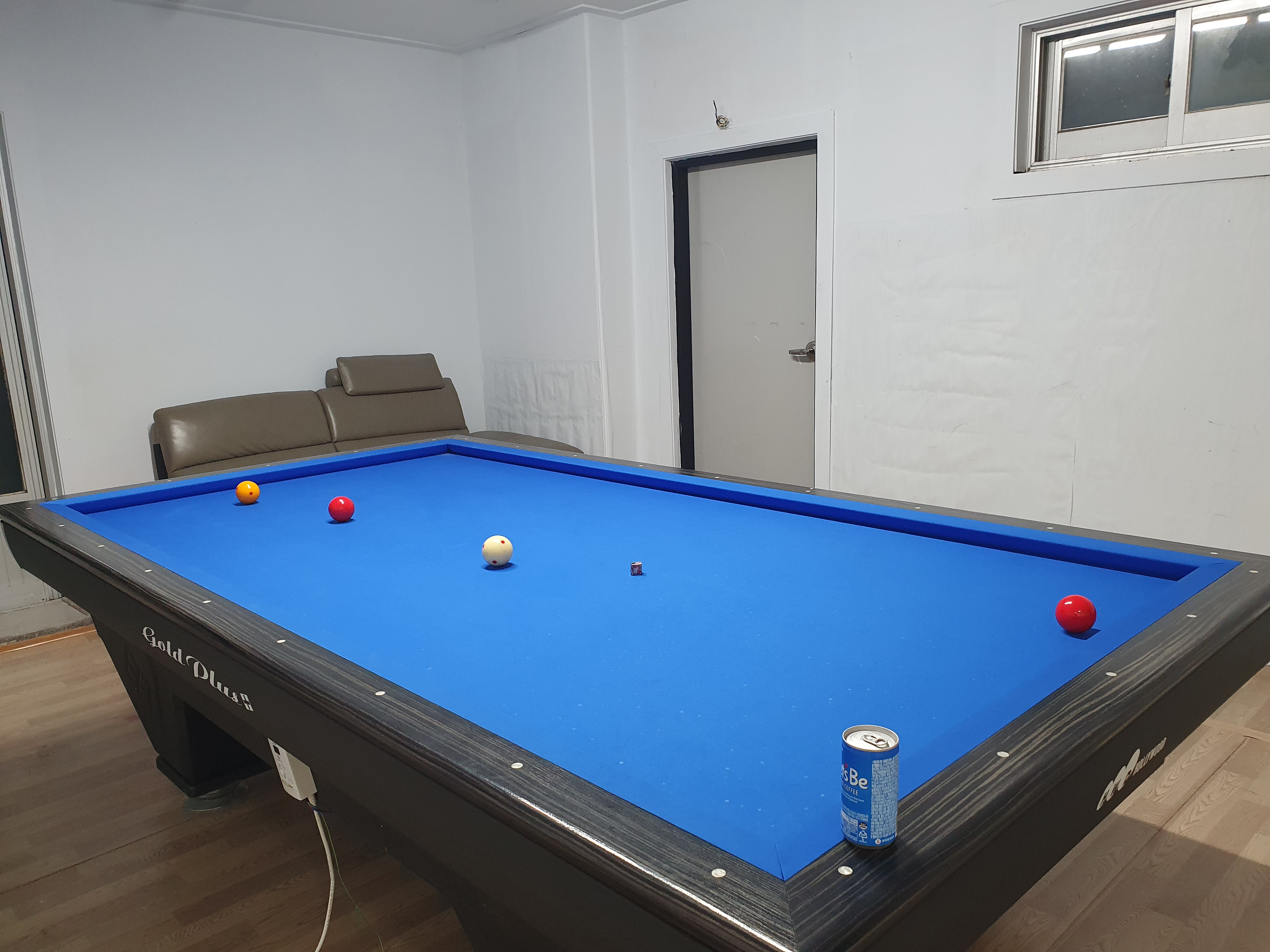 당구대가 있어서 잠시 남편이 당구 실력을 보여주네요. 역시 운동과 거리가 먼 남편이네요.