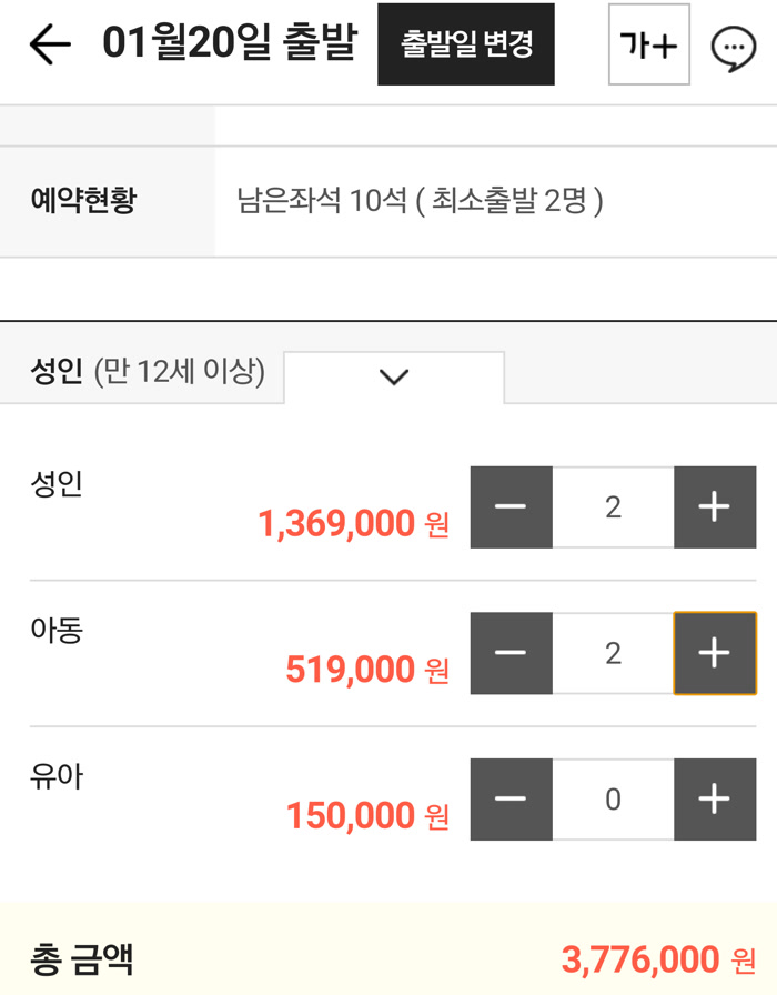 성인 2명, 아동 2명으로 4인 가격이 괌 pic골드카드로 4박 5일 패키지여행 가격은 3,776,000원이에요. 가이드비 80불은 포함하지 않은 가격이네요. 가이드비까지 포함하면 400만 원이네요.