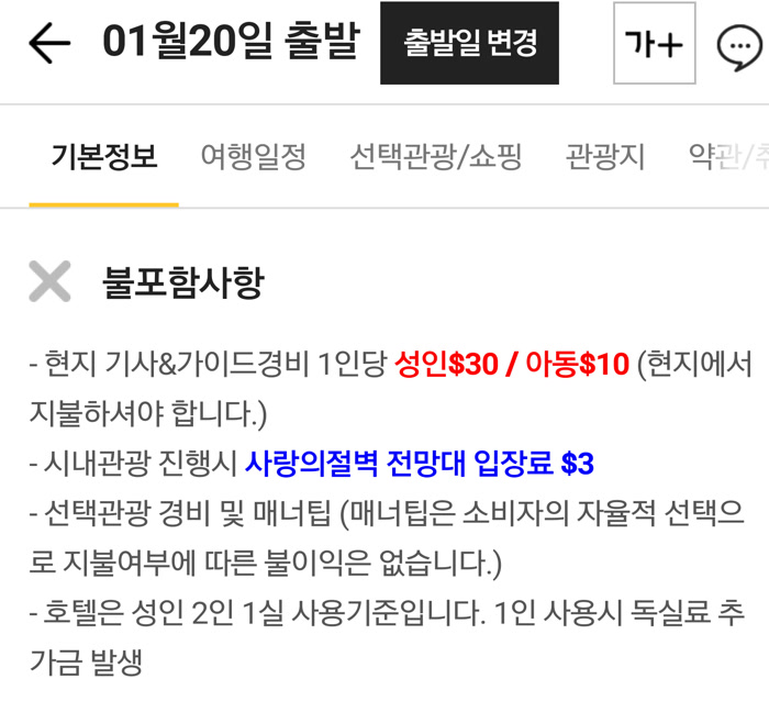 불포함사항은 가이드비 성인 30불, 아동 10불이네요. 작년 괌에서 저희가 만난 가이드분은 운전도 하시고 가이드도 하시네요. 그분이 너무 친절해서 이번에도 그분이셨으면 좋겠어요.