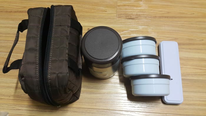 반찬 그릇은 보온이 되지 않아서 차가운 반찬을 먹어야 하네요. 다음에는 반찬통도 보온이 되는 것을 사야겠어요.