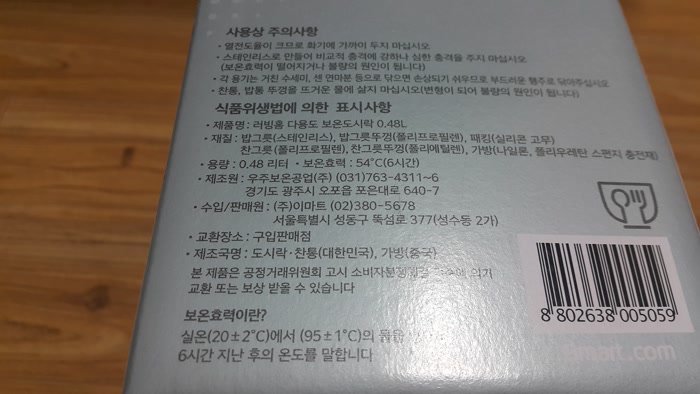 보온 효력은 54도로 6시간이라고 하네요.