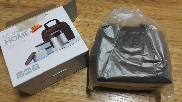 비닐에 쌓인 도시락 가방을 꺼냈어요.
