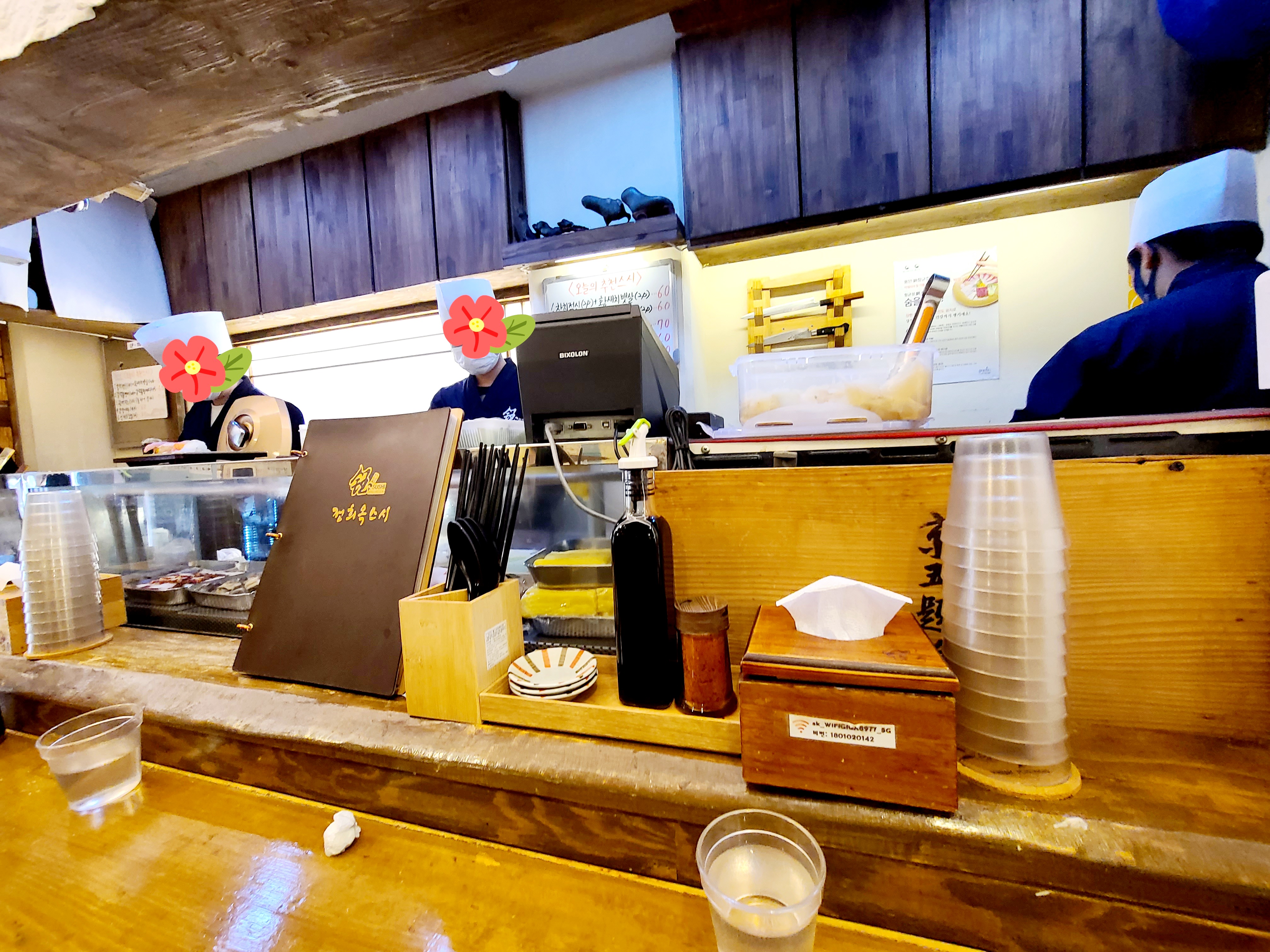 1월 7일, 그래도 경남대 맛집에서 먹어보자며 정희옥스시에 다시 갔어요. 테이블은 다 차서 1인석에 주방을 마주보며 앉았어요. 여기는 늦게 가면 웨이팅이나 1인석에 앉아야 하네요.