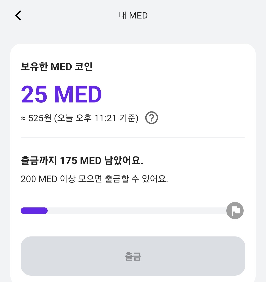 열심히 걸어서 200MED를 만들어서 출금을 해 보아야겠습니다.