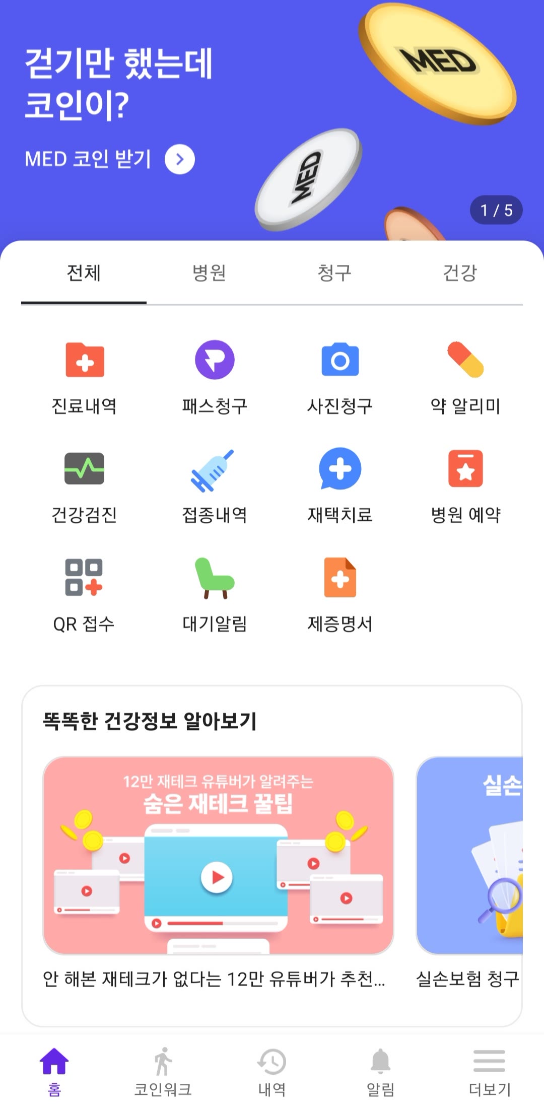 메디패스 앱에는 코인워크 외에 다양한 서비스가 있습니다.
