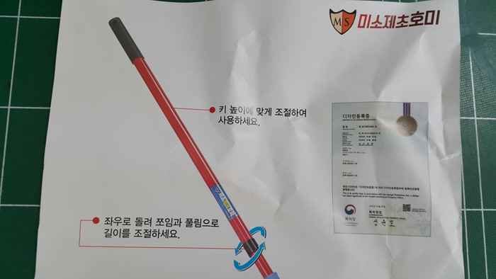 미소제초호미는 좌우로 돌려 쪼임과 풀림으로 길이를 조절할 수 있다고 해요. 키 높이에 맞게 조절하여 사용할 수 있다고 해요.