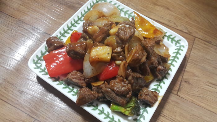 - 접시에 완성된 찹스테이크를 담아줍니다.