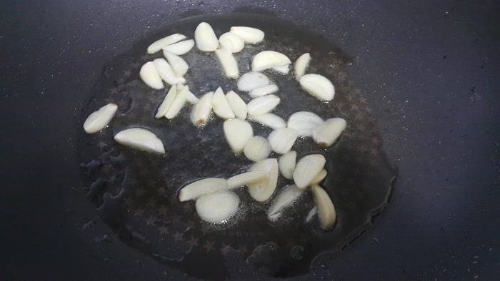 - 팬에 소량의 기름을 두르고 마늘을 1분간 익혀줍니다.