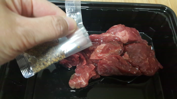 소고기이네요. 최대한 한우를 먹어야지 하는데 가격 면에서 이런 밀키트는 외국산이네요. 단가를 맞추다 보면 어쩔 수 없는 부분이네요.