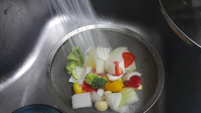 1차 세척한 야채이지만 한 번 더 씻어주었어요.