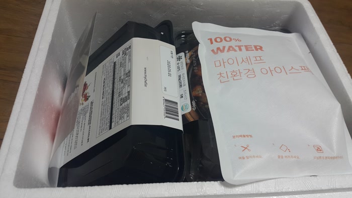 마이셰프 친환경 아이스팩이 인상적이었어요. 이 아이스팩은 물이 들어 있어서 버릴 때 물을 빼고 쉽게 버릴 수 있네요.