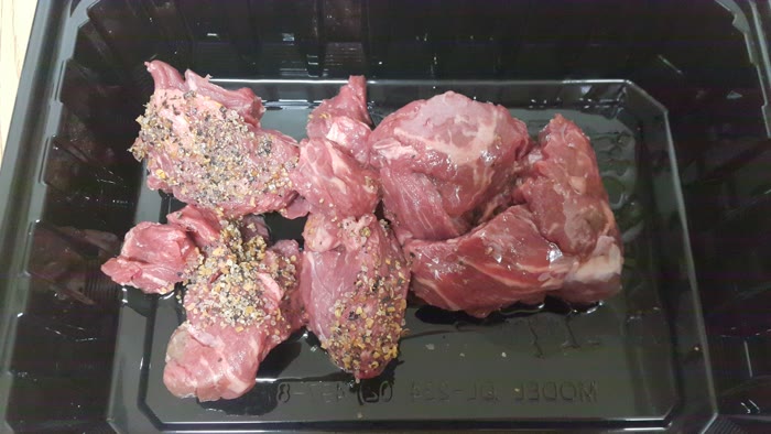 고기 사이사이에 시즈닝과 올리브유가 잘 들어가게 했어요.