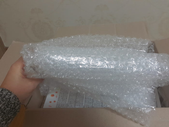 택배 상자를 뜯으니 뽁뽁이가 가득 들어있네요.