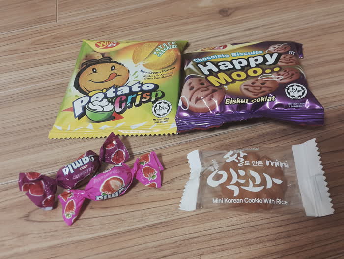 포테이토크리스피, 해피무, 미니약과, 캔디 2개로 사은품이 되어 있네요. 이것은 제가 맛있게 먹었어요.