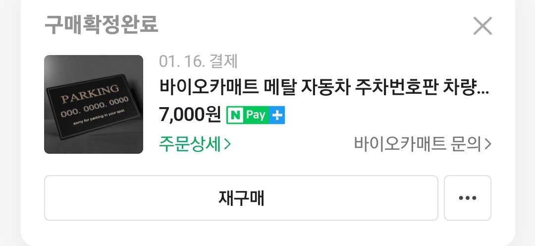 주차번호판도 인터넷으로 샀어요.