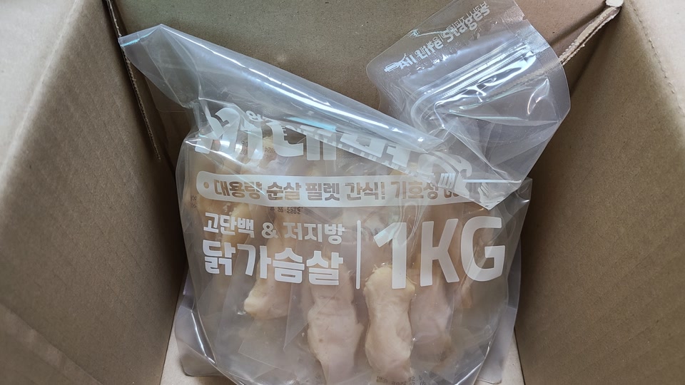 네이버쇼핑으로 꺼내먹냥 순살 닭가슴살 1kg을 13900원에 배송료 2500원으로 16,400원을 썼습니다.