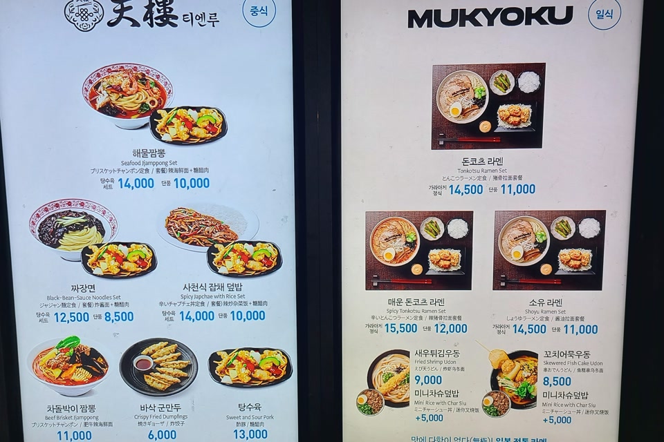 오늘 선택 메뉴는 티엔루, MUKYOKU, 별미가입니다.
