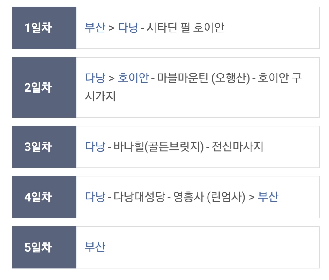 2. 베트남 다낭 호이안 패키지 여행 일정