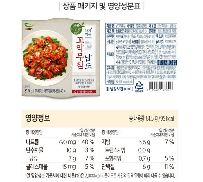 쫄깃한 국내산 새꼬막살을 특제양념로 무쳐낸 별미일품반찬이라고 하네요.