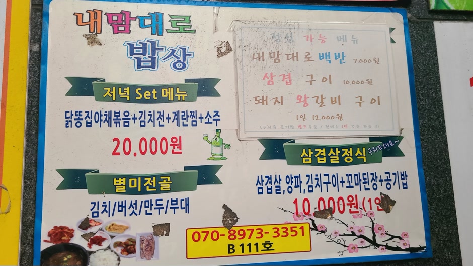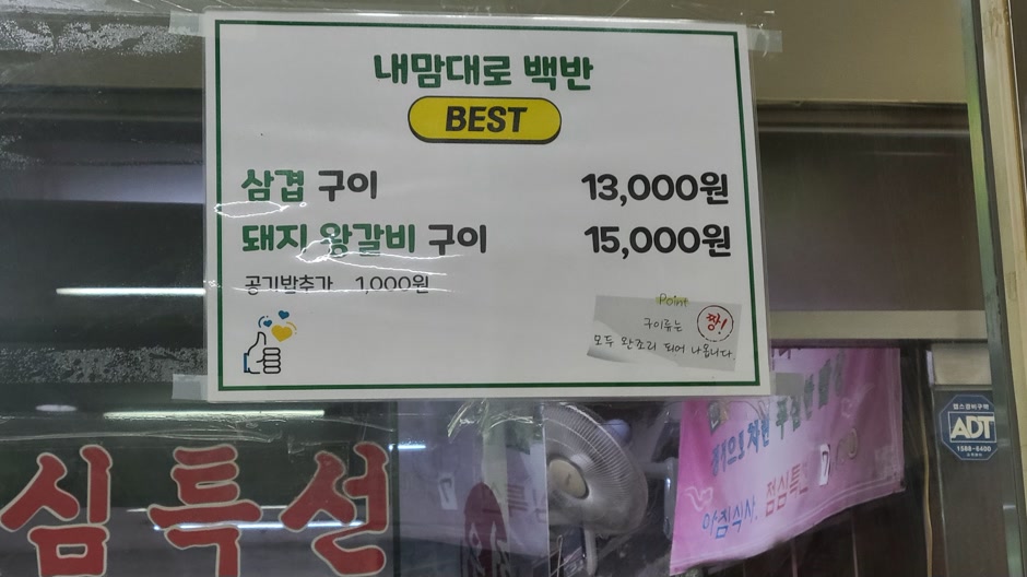 내맘대로 백반 대표 메뉴는 삼겹구이와 돼지 왕갈비구이인가 봅니다.