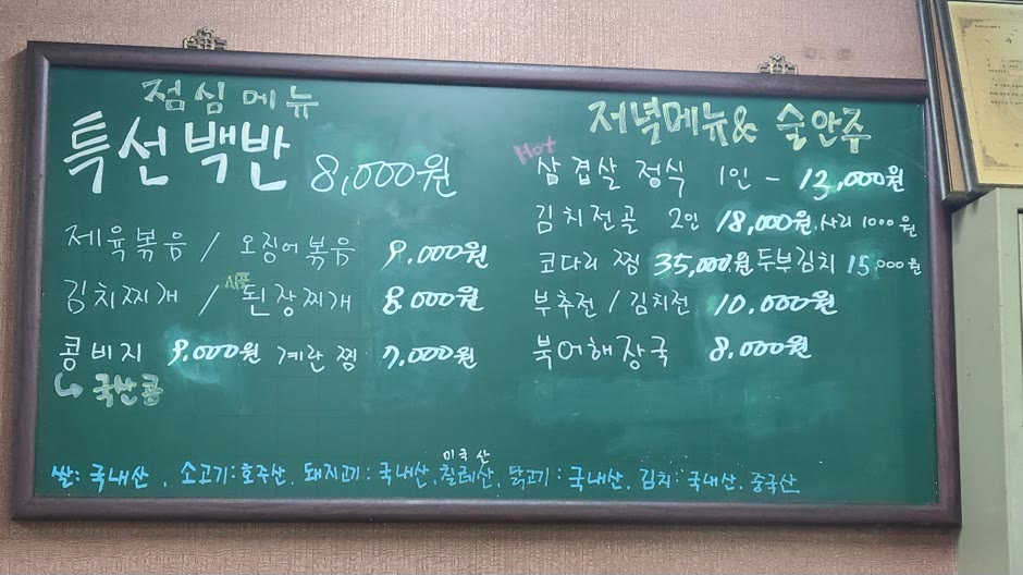 내맘대로 밥상 메뉴판입니다. 점심 특선백반은 8,000원입니다. 서울인데도 밥값이 비싸지 않습니다.