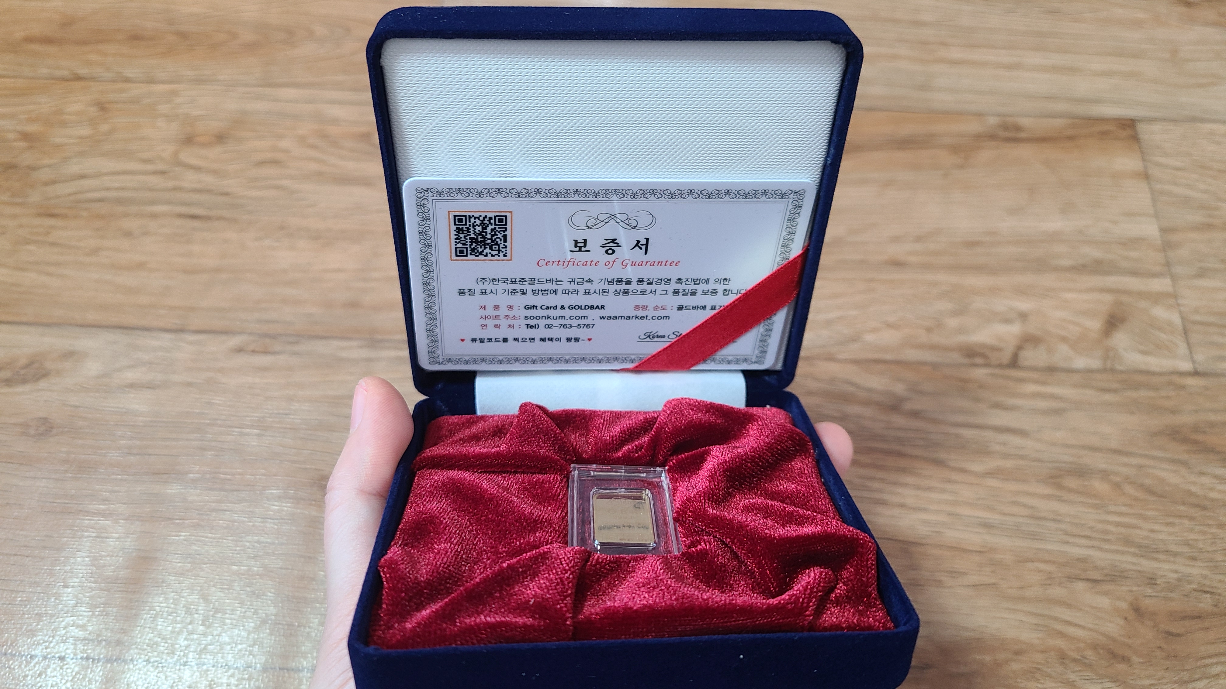 다음에도 선물을 드릴 일이 있으면 골드바를 선물해야겠어요. 1g짜리 골드바이지만 가격은 떨어지지 않을 것이고 반짝반짝 빛이 나서 받는 사람도 기분이 좋을 것이라 봐요.