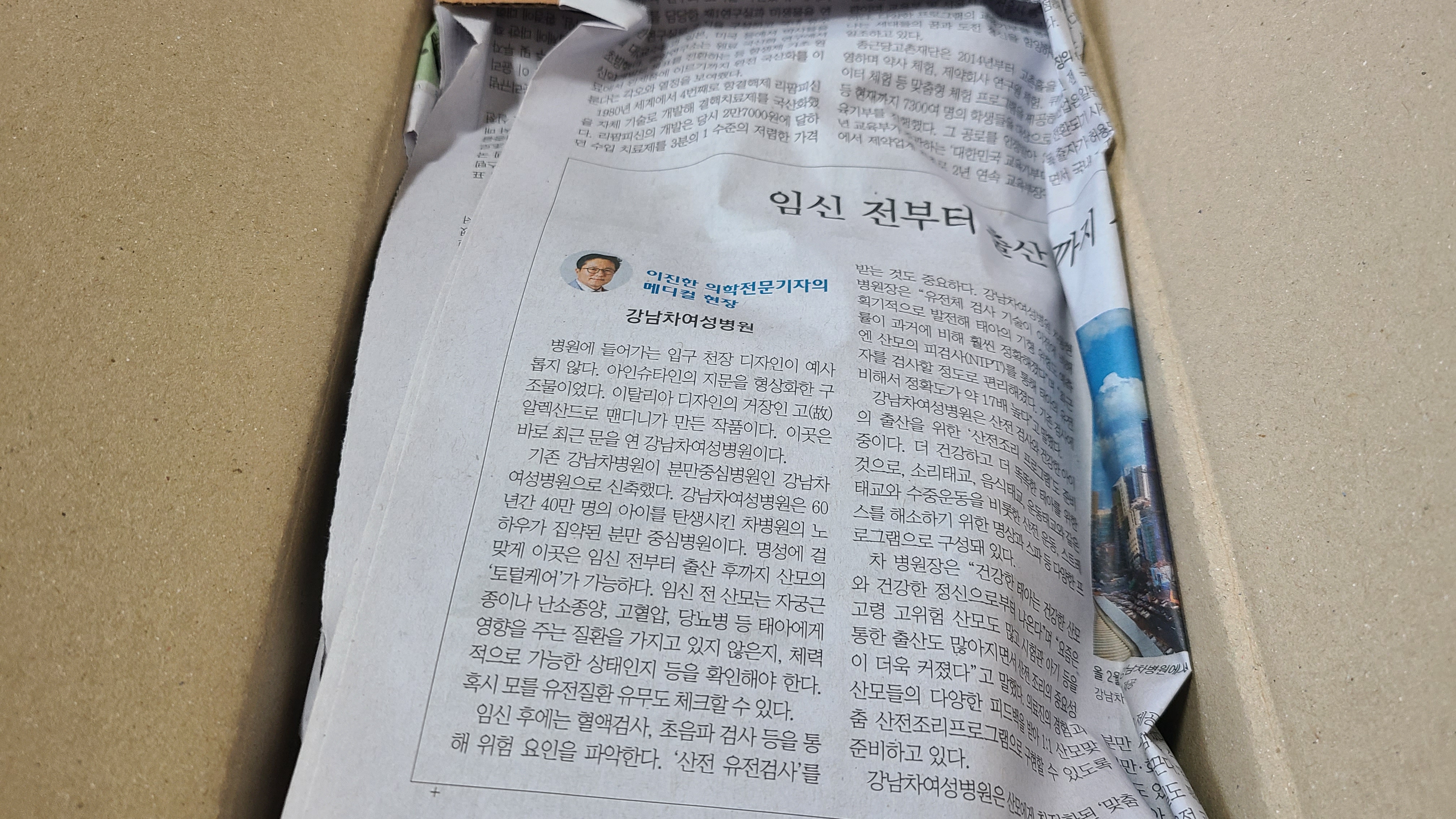 우체국 박스를 여는 신문지로 위가 덮여 있네요.