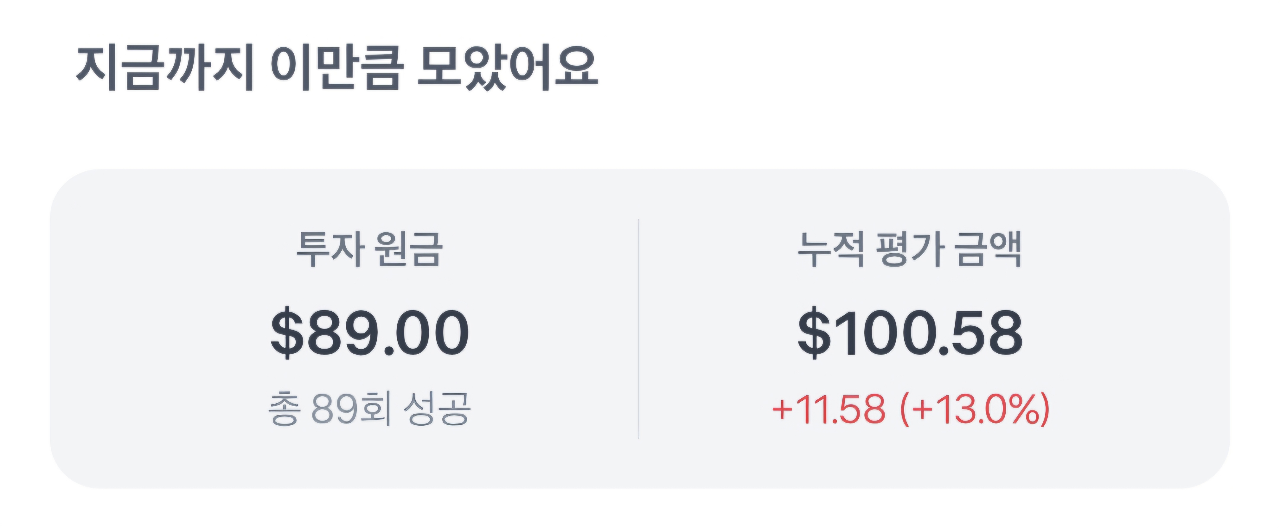 QLD 주식 1달러씩 넣어서 89회만에 89달러로 13% 수익이 났습니다.