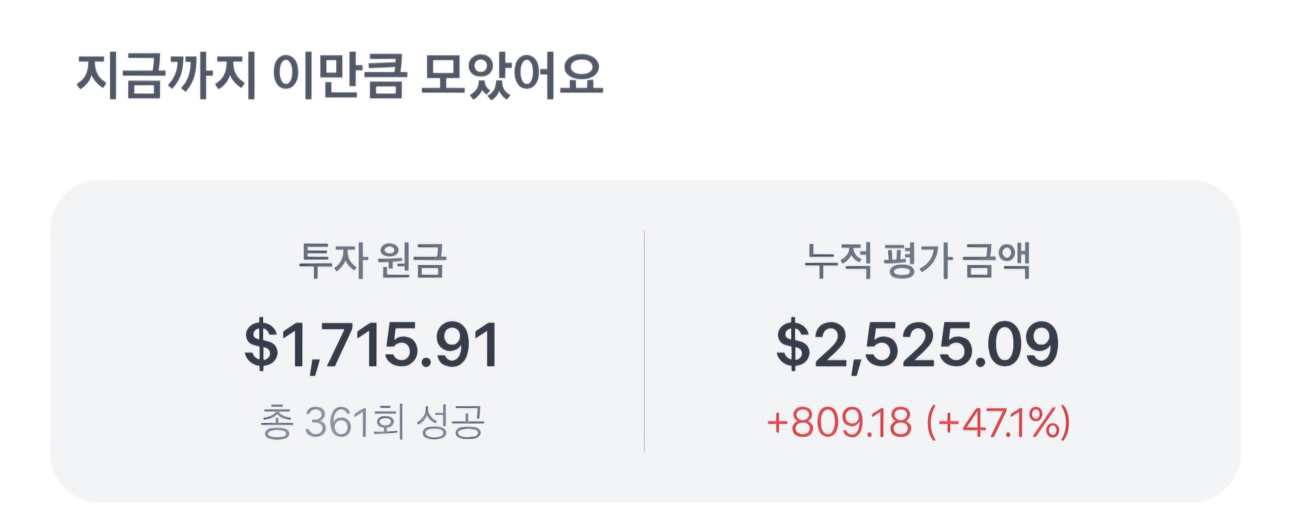 잘 모르는 주식이지만 계속 수익이 나고 있기 때문에 계속 적립식 투자를 하게 됩니다.