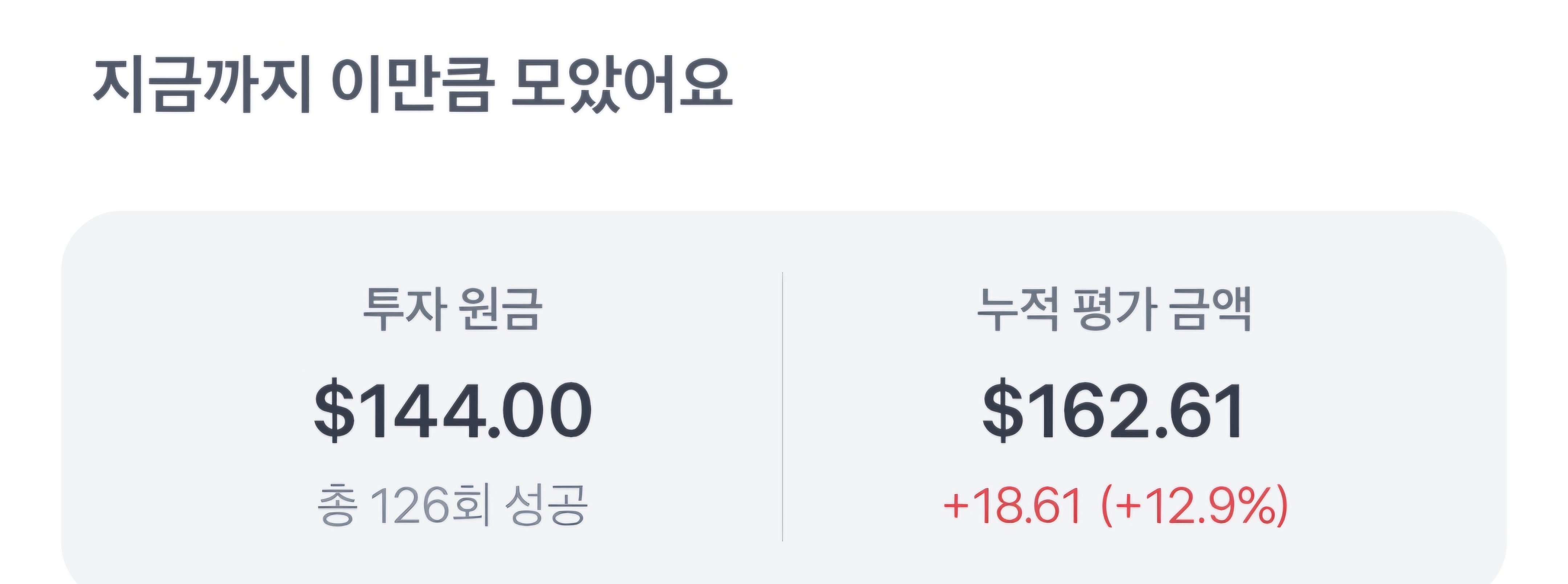 다시 144달러를 모았습니다. 누적 평가금액은 18.61달러입니다. TSLL의 매력에 빠져듭니다.