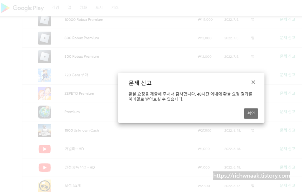 게임상의 환불은 구글플레이 스토어에서 잘 되지 않는다고 합니다.