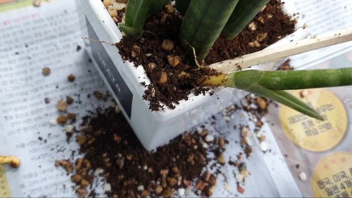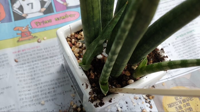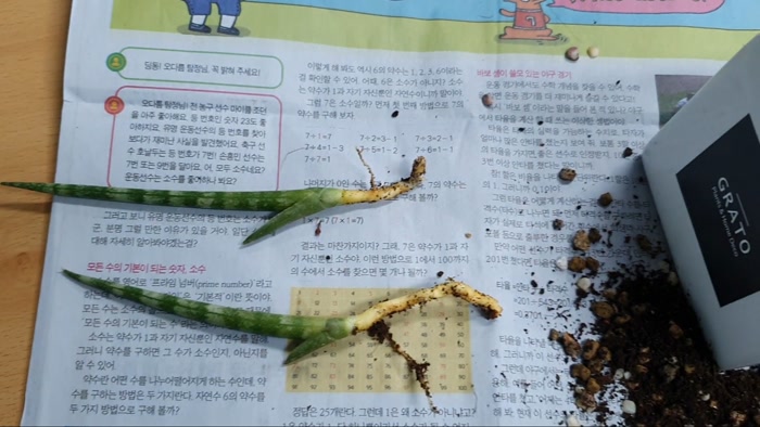 스투키 어린 새순을 옮겨 심을 준비를 했습니다. 신문을 준비하는 것만으로도 반은 했다고 볼 수 있습니다.