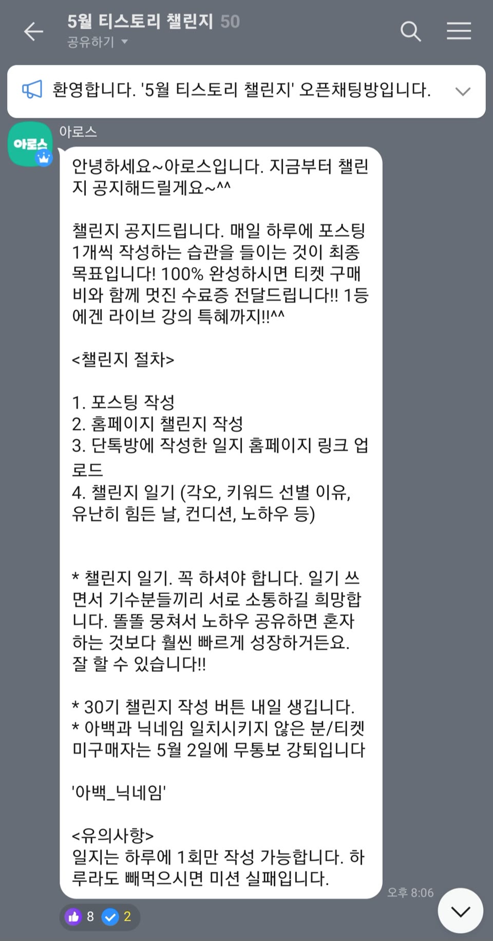* 아백과 닉네임 일치시키지 않은 분/티켓 미구매자는 5월 2일에 무통보 강퇴입니다
